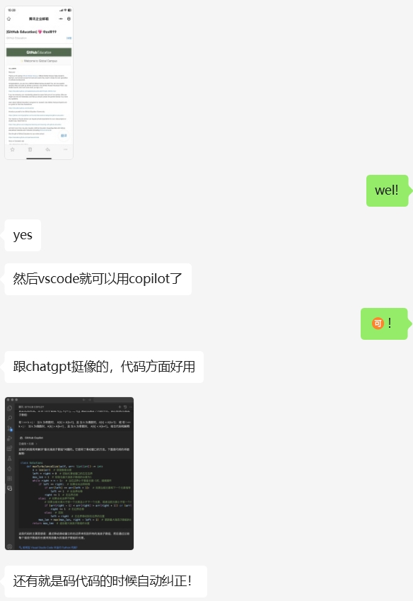 代码方面,Copilot 比 GPT 更加专业,而且不需要我手动询问他就能给出提示。这样的 AI 工具我之前用过一款类似的 CodeGeeX,功能上没有太多区别,优劣我没有具体比较过。
