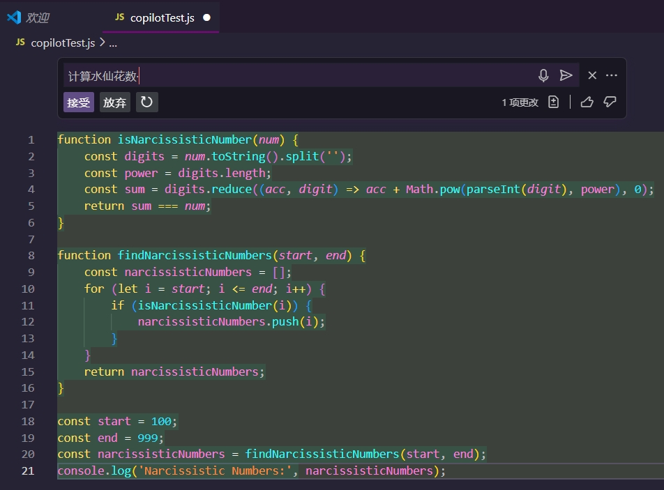 按下 Tab 全部接受,按下 Ctrl + → 接受一个关键字(比如 const, beginDate...)