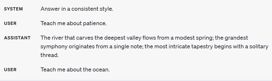 在 api 里,我们可以传输3种不同角色的消息类型。